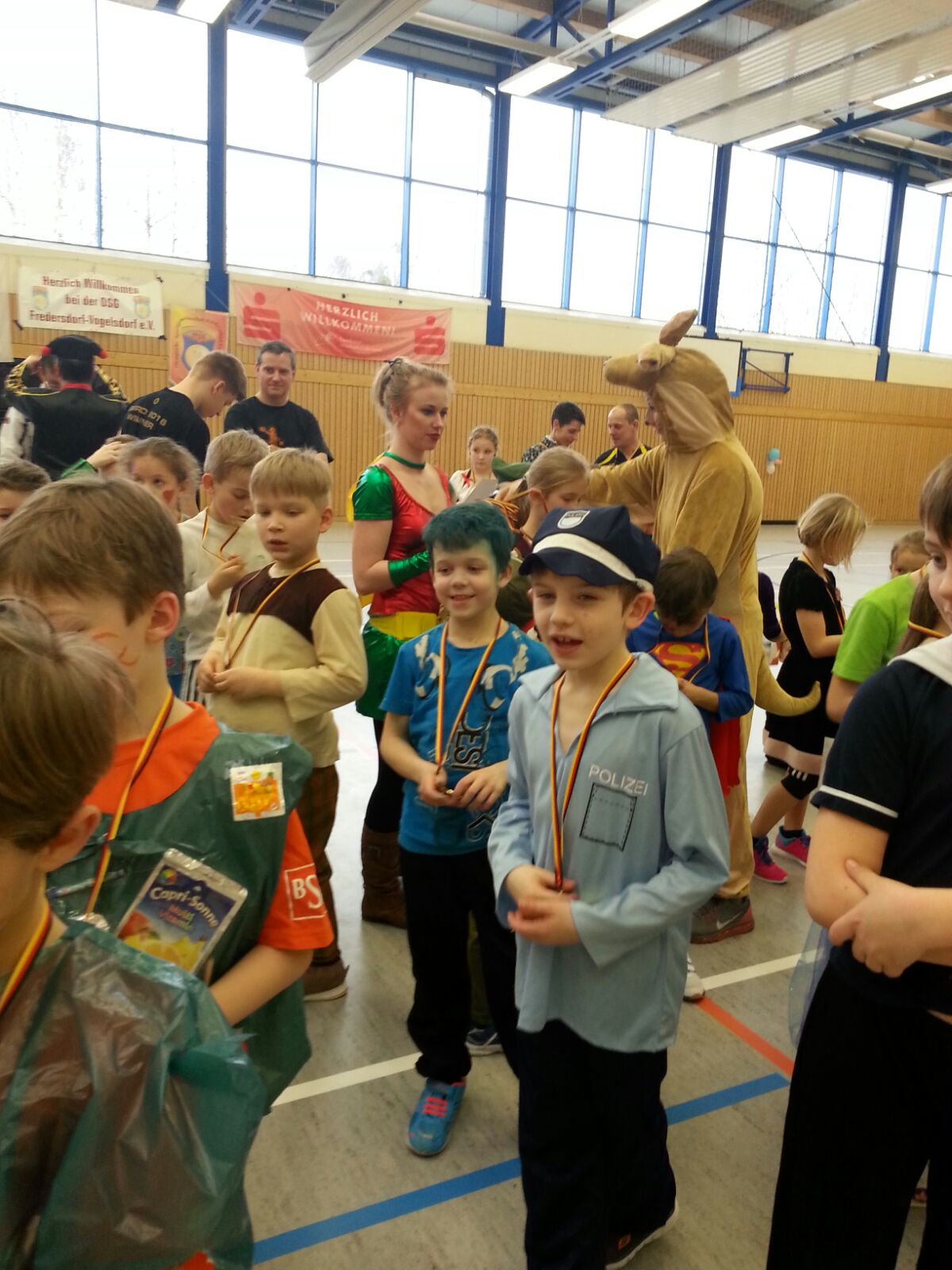 Am Ende rief das Känguru Jumpi, seit 4 Jahren unser Maskottchen der Minis,: „Auf die Bonbons fertig los!“ und es regnete 5 kg Kamelle aus Lutschern, Bonbons und Gummibärchen. Die OSG verabschiedete sich süß bei ihren Minis und Eltern und dankte allen Helfern für diesen gelungenen Faschingsturniertag!