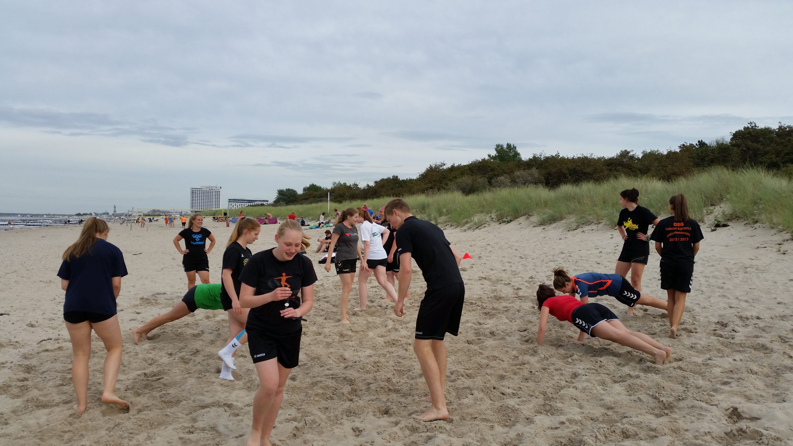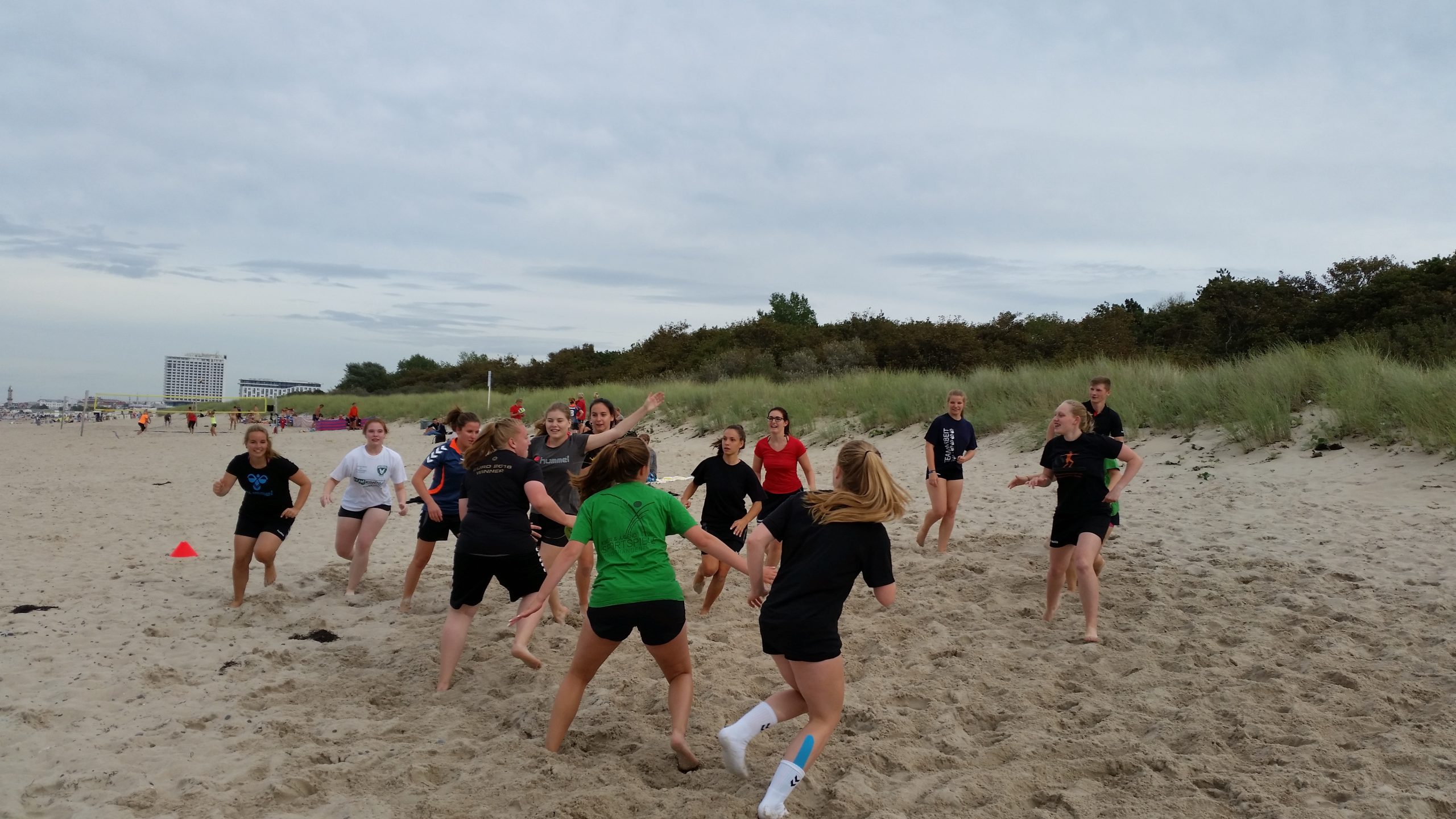 Mit 2 Trainingseinheiten am Freitagnachmittag und Samstagmorgen am Strand begann unser Wochenende in Warnemünde. Samstag um 14.40 Uhr startete dann für die Aw das Turnier. Ein Müh mehr an Kraft und Kondition sicherte uns am Sonntag den 2. Platz beim Warnemünde Cup. Von vier Mannschaften spielte eine (Warnemünde I) ihre Spiele sicher und souverän herrunter. Die anderen 3 Mannschaften (Warnemünde II, Rostock und wir) spielten alle auf Augenhöhe und man sah spannende Spiele. Wir spielten am Samstag und Sonntag jeweils jede gegen jede Mannschaft. Am Samstag gewann jede von uns 3 Mannschaften jeweils ein Spiel, so dass am Sonntag alles wieder auf null stand. Heute belohnten sich die Mädels mit Kampf- und Teamgeist selbst und konnten die Spiele gegen Warnemünde II und Rostock selbst nach einem Rückstand gewinnen. Das habt ihr super gemacht Mädels, jede einzelne von euch.