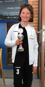 Trotz des 5. Platzes haben wir wieder viel gelernt und wissen, dass wir Deckung schon gut können, uns aber im Angriff mehr zutrauen müssen. Freuen durften wir uns dann noch darüber, dass Mia als beste Spielerin des Turniers geehrt wurde. Die beste Torhüterin kam aus Wildau und die Torschützenkrone teilten sich zwei Spielerinnen aus Frankfurt und Wildau.