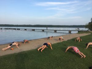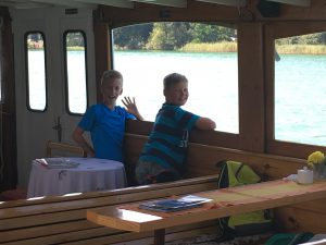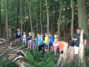 Vielleicht noch eine Episode: Am Mittwoch stand Wandern- und Klettern rund um den schönen Werbellinsee auf unserem „Trainingsplan“. Die Jungs hatten bereits drei Tage intensives Training in den Beinen, deshalb wollten wir es am Mittwoch Vormittag ruhiger angehen. Wir packten den Wanderrucksack mit Verpflegung, Badehose und dann ging es los. Wir wanderten ca 5-6 km am See entlang, Ziel war der kleine Hafen in Joachimsthal wo um 12.30 Uhr unser Boot auf uns „wartete“ Auf dem Wanderweg zwischen Wurzeln, Bäumen, Moos und Wasser entdeckten die Jungs einen riesigen Biberbau. Auch für uns Trainer war dies das erste Mal in Natur einen Bau in Augenschein nehmen zu können. Und wirklich die Kinder und wir staunten nicht schlecht, als uns Herr oder Frau Biber aus dem hohlen Baumstumpf anblinzelte, das war spannend! Wie schön unsere Brandenburger Natur doch ist. Am Hafen angekommen machten wir Picknick und sprangen zur Abkühlung in den See. Zurück ging es mit dem Boot, bei einem Eisbecher konnten sich die müden Wanderer ausruhen und den Ausblick über den See genießen.