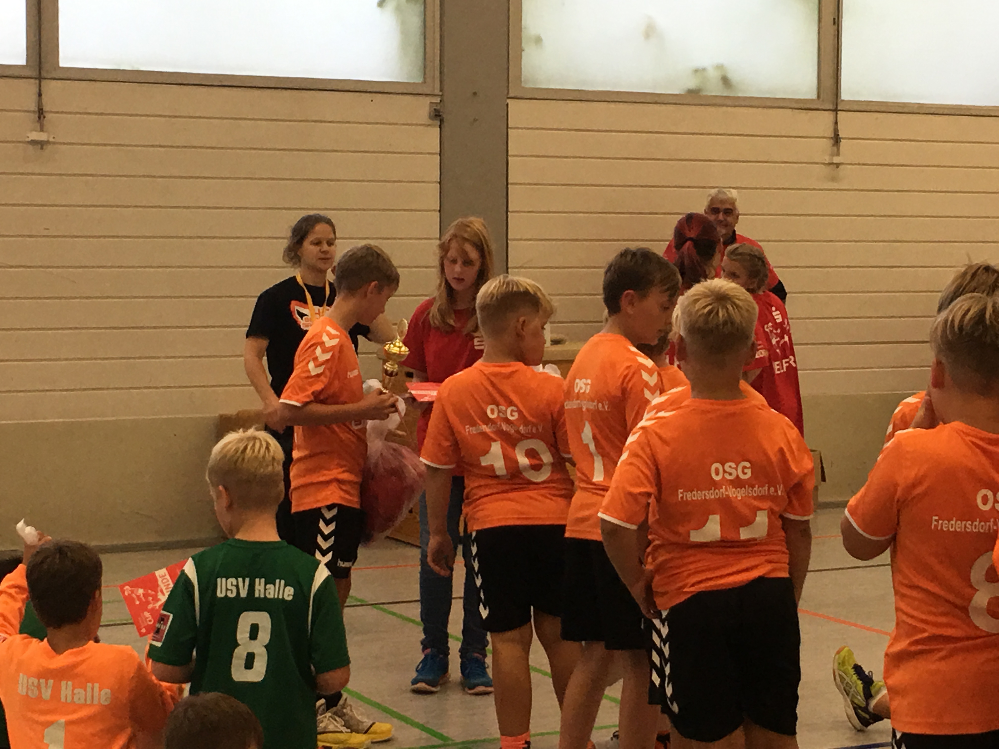 Herzlichen Glückwunsch dem Team der E I , das Siegerteam wurde mit einem Pokal, Urkunden, T-Shirts, einem Rucksack und Jonglierbällen ausgezeichnet, welche natürlich sofort in der Umkleide zum Einsatz kamen.