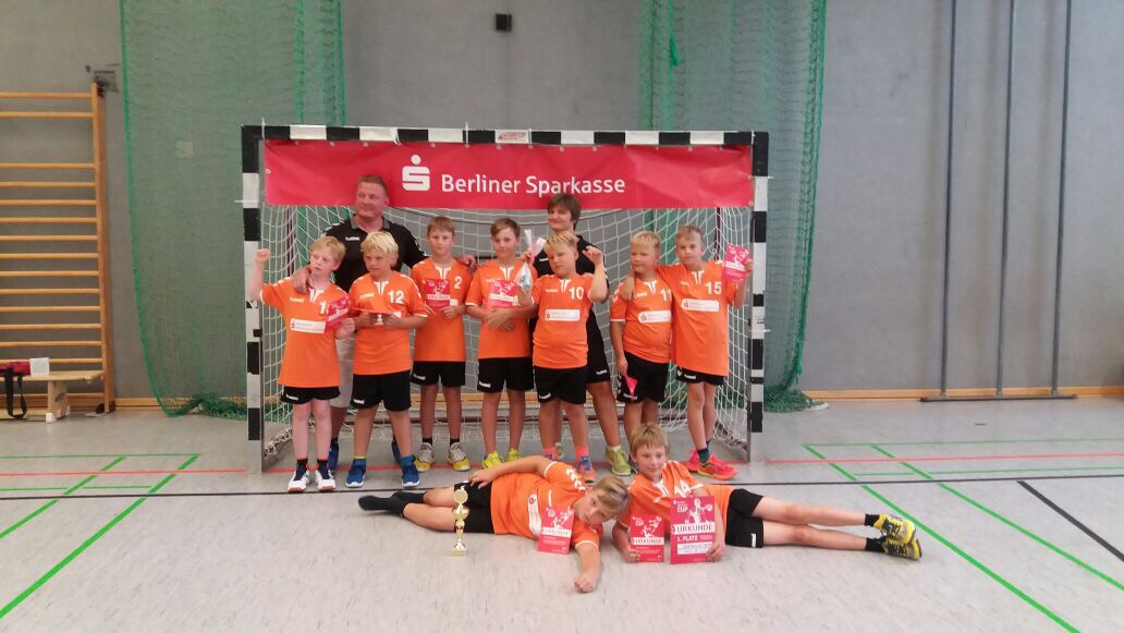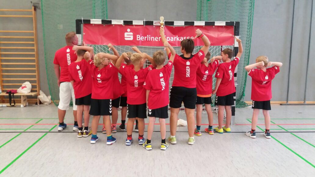 Unserer Gegner waren Lichtenrade, BSV 1892 und Halle, wir spielten insgesamt 6 Spiele (Hin- und Rückrunde) je 12 min. Im ersten Spiel waren beide Teams sehr nervös, und unsere Jungs blieben weit unter ihrem möglichen Niveau. Es reichte trotzdem zum ersten Sieg 7:3. In den folgenden Spielen fanden unsere Jungs , aber auch die Gegner, immer besser ins Spiel, im Tor kamen mal Maxi, Kimi oder Arthur zum Einsatz. Alle drei zeigten gute Leistungen, schön für uns so variabel sein zu können und auf jeden Einzelnen bauen zu können. Mit Köpfchen wurden tolle Pässe bis in die gegnerische Hälfte geworfen, so dass ein paar beachtliche Konter zu schnellen Toren führten. Am Ende schafften es unsere 9 Jungs sich in allen sechs Spielen durchzusetzen, auch ein hartes Abwehrspiel von Halle konnte den Turniersieg nicht gefährden.