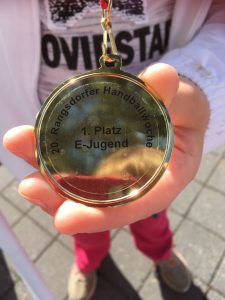 Als dann von hinten angefangen jede Mannschaft eine Medaille bekam und als zweiter Platz Ahrensdorf dran war, dauerte es zwei Sekunden bis sie dann mit bekommen haben, dass sie die Sieger waren. Da fingen sie schon an zu jubeln und lagen sich in den Armen.