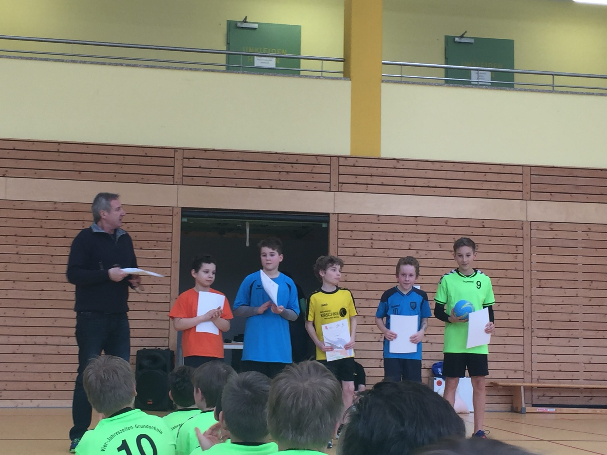 Der Schulsportverantwortliche Herr Bab eröffnete um 09.45 Uhr den Wettkampf. In vier Spielen setzte sich die Schulmannschaft der „Vier-Jahreszeiten-Grundschule erfolgreich durch und errang damit den Titel „Regionalmeister bei Jugend trainiert für Olympia “