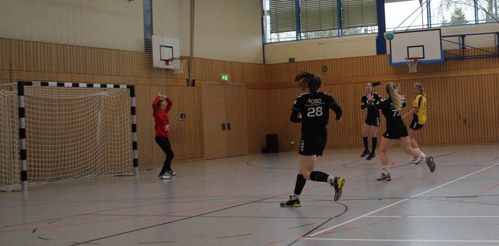 So begann das Spiel wie erwartet. Nach einer Führung durch unser Team konnte der Gegner immer wieder ausgleichen. In der 5. Minute stand es 4:4, in der 12. Minute 8:8 und in der 21. Minute 14:14. In Minute 27 ging die gegnerische Mannschaft gar mit 16:17 in Führung, doch unsere Mädels kämpften weiter und konnten sich bis zur Halbzeit mit 19:17 einen Zwei-Tore-Vorsprung erspielen.