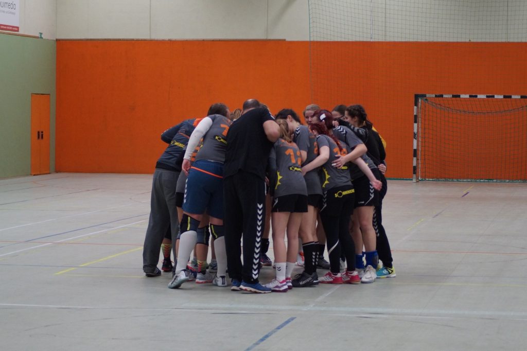 Das Spiel begann nervös mit Fehlern auf beiden Seiten, bevor sich Finowfurt in der 13. Minute erstmals etwas deutlicher mit 7:3 absetzen konnte. Die Gäste aus Fredersdorf nahmen eine Auszeit und die zeigte die erhoffte Wirkung. Mit konsequenter Abwehr, erfolgreichen Tempogegenstößen – unter anderem mit einem starken 5-Tore-Lauf von Kathi auf Außen – gelang der Ausgleich. In den folgenden Minuten ließ man die Gegnerinnen nie mehr als ein Tor davonziehen. Entsprechend ausgeglichen lautet der Halbzeitstand und es ging mit 15:15 in die Kabine.