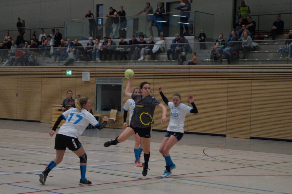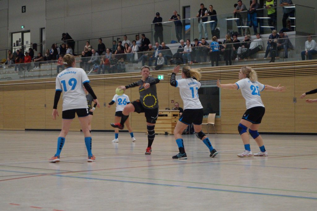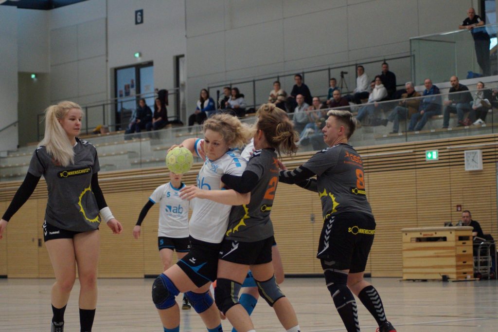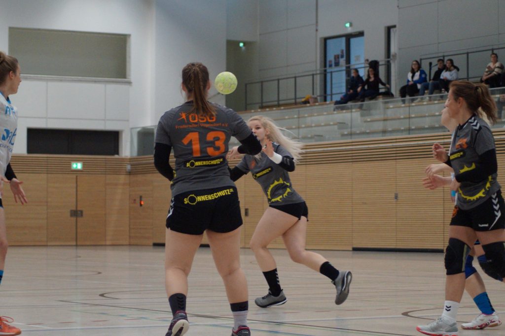 Doch der Sieg war keineswegs eine leichte Sache, denn die Partie war durchaus umkämpft. Auch wenn die Heimmannschaft in der zweiten Minute zum ersten und lediglich einzigen Mal in Führung ging, bewegten sich beide Teams über weite Strecken auf Augenhöhe. Die OSG konnte mit maximal drei Treffern davonziehen und immer wieder gelang es Falkensee heranzukommen oder sogar auszugleichen. Insbesondere die Anspiele zum Kreis konnten nicht wirkungsvoll genug unterbunden werden. Vorne hingegen lief es gut. Eine bestens aufgelegte Hummi verteilte die Bälle und schloss selber ab (7 Tore), Romy „lieferte“ zuverlässig (13) und setzte Julia (3) in Szene. Laura (2) und Vetti (3, inklusive sehenswertem Heber) trafen von außen. Mit einem Halbzeitstand von 14:17 ging es in die Kabine.