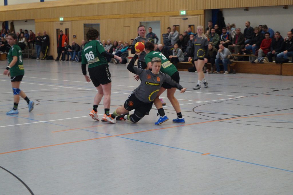 Das Spiel begann zunächst stockend, die ersten 3 Minuten konnte kein Team den Ball im gegnerischen Tor unterbringen. Über die nächsten beiden Angriffe gelang es der OSG jedoch sich mit 2:0 ab zu setzen. Nun kamen auch die Grünheiderinnen ins Spiel und konnten vor allem durch Tore aus dem Rückraum zunächst ausgleichen und dann in Führung gehen. Eine Umstellung der OSG Abwehr dämmte diese Torgefahr etwas ein und auch im Angriff lief es einigermaßen, wobei allerdings zu viele einfache Chancen liegen gelassen wurden. Mit einem 2 Tore Vorsprung für Grünheide ging es mit 10:12 in die Pause.